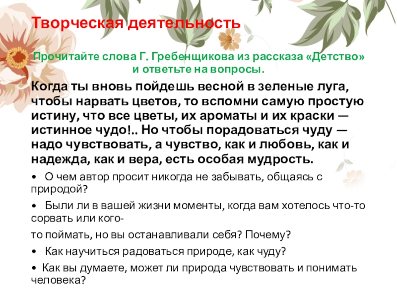 Прочитайте слова Г. Гребенщикова из рассказа «Детство» и ответьте на
