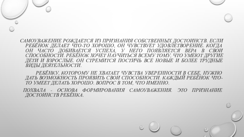Высокий уровень самоуважения - очень ценная черта характера ребёнка. Уверенность в своих силах помогает ему справиться с трудностями роста.