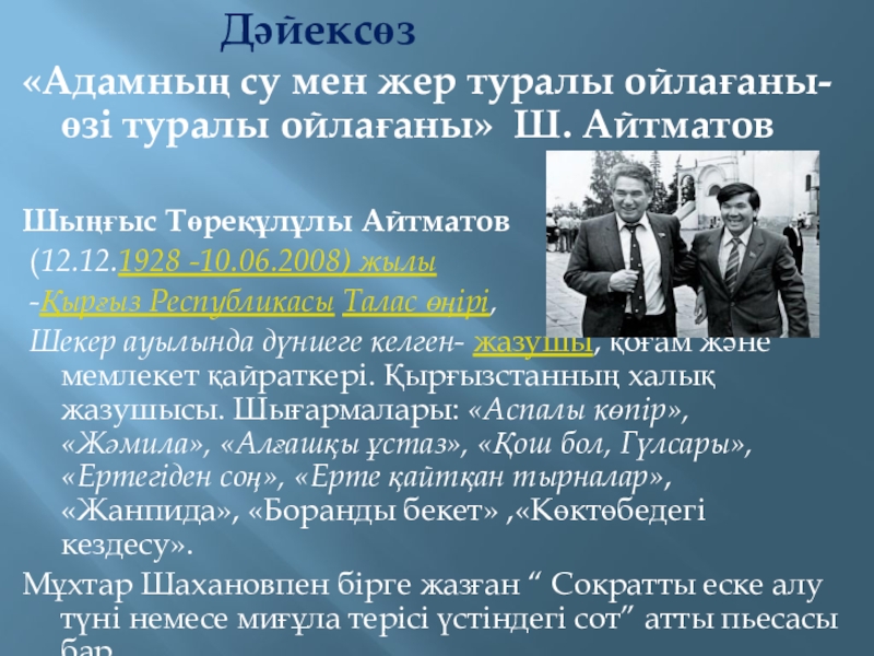 Это сайт презентаций, где можно хранить и обмениваться своими презентациями, докладами, проектами, шаблонами в формате PowerPoint с другими пользователями. Мы помогаем школьникам, студентам, учителям, преподавателям хранить и обмениваться учебными материалами.