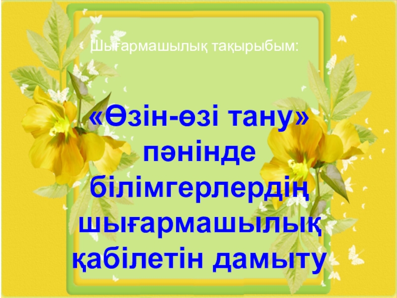 «Өзін-өзі тану» пәнінде білімгерлердің шығармашылық қабілетін дамыту