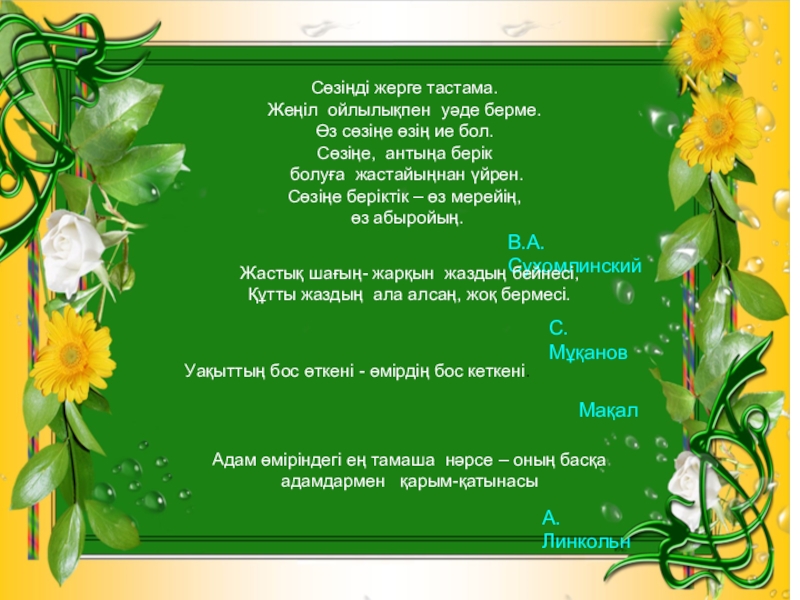 Слайд 12Сөзіңді жерге тастама.