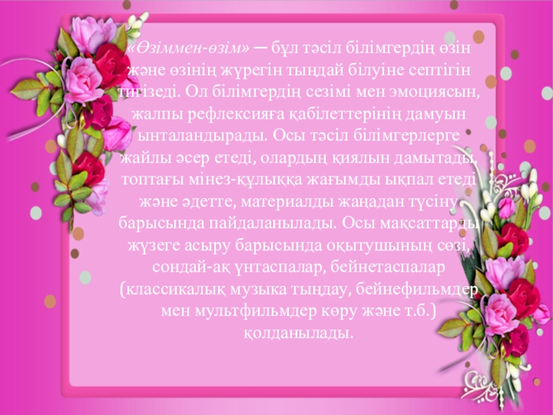 Слайд 7«Өзіммен-өзім» ─ бұл тәсіл білімгердің өзін және өзінің жүрегін тыңдай білуіне септігін
