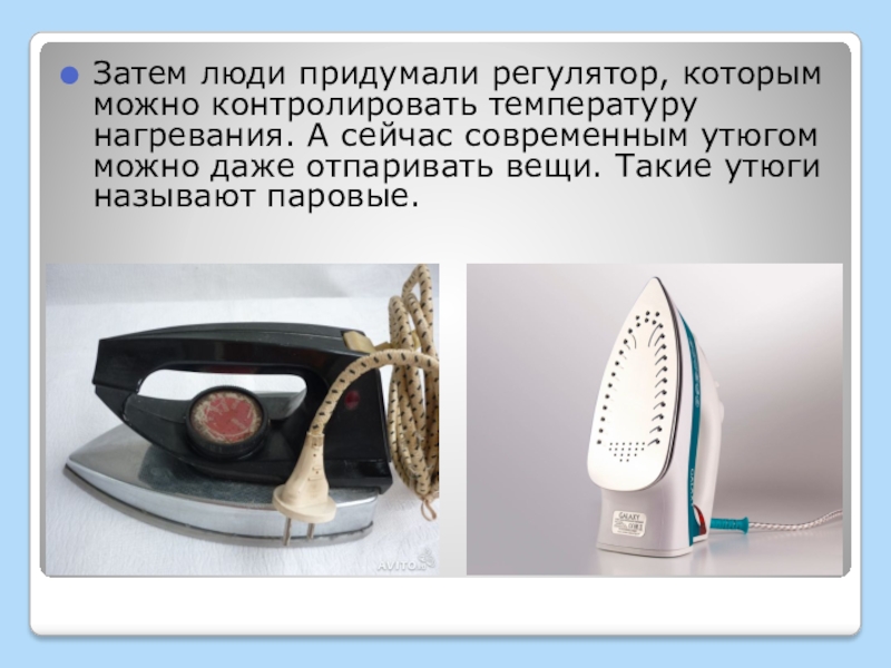 Слайд 10Затем люди придумали регулятор, которым можно контролировать температуру нагревания. А сейчас