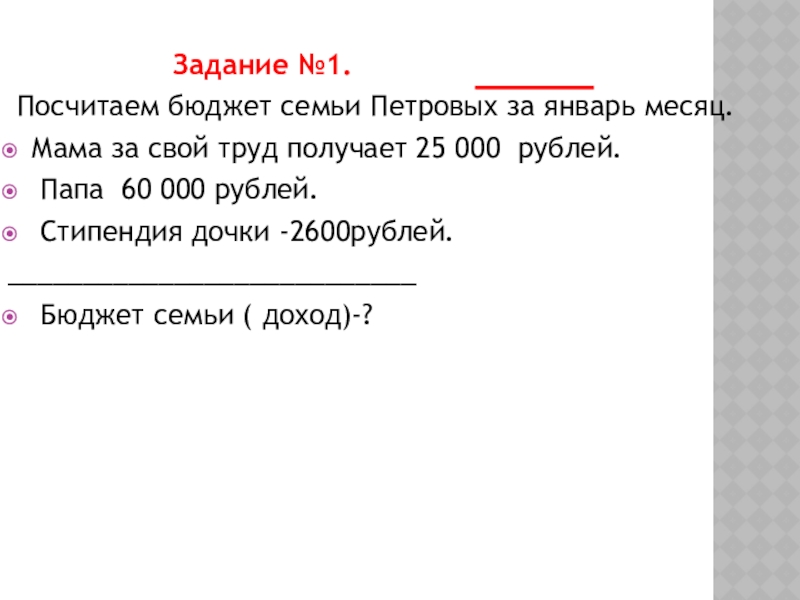 Бюджет семьи. Основные источники доходов и основные статьи расходов.