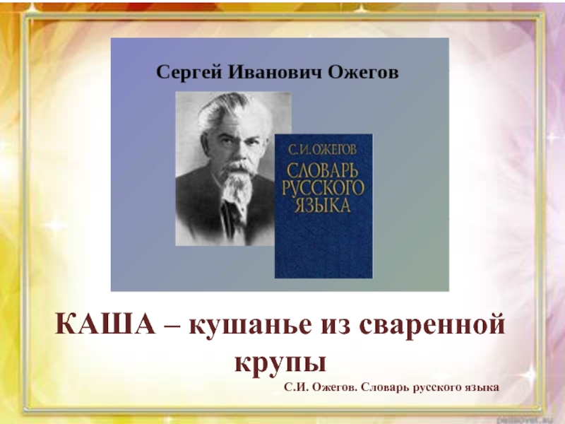 КАША – кушанье из сваренной крупыС.И. Ожегов. Словарь русского языка