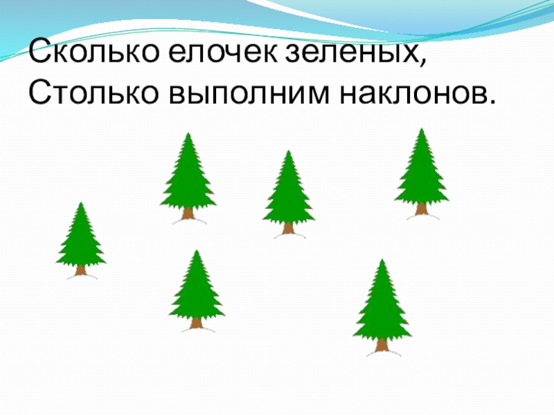 Слайд 5Сколько елочек зеленых, Столько выполним наклонов.