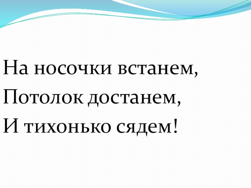 На носочки встанем,Потолок достанем, И тихонько сядем!