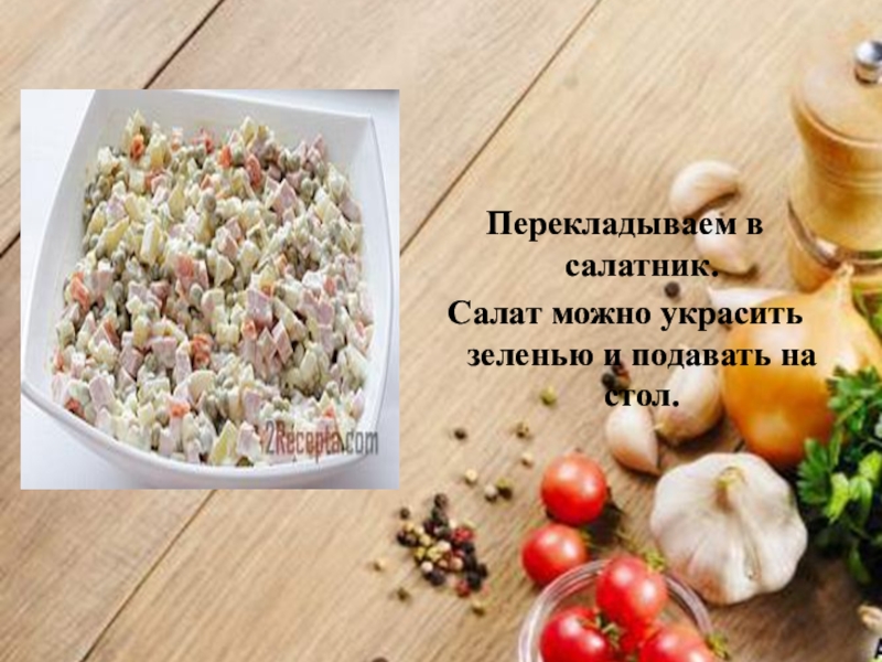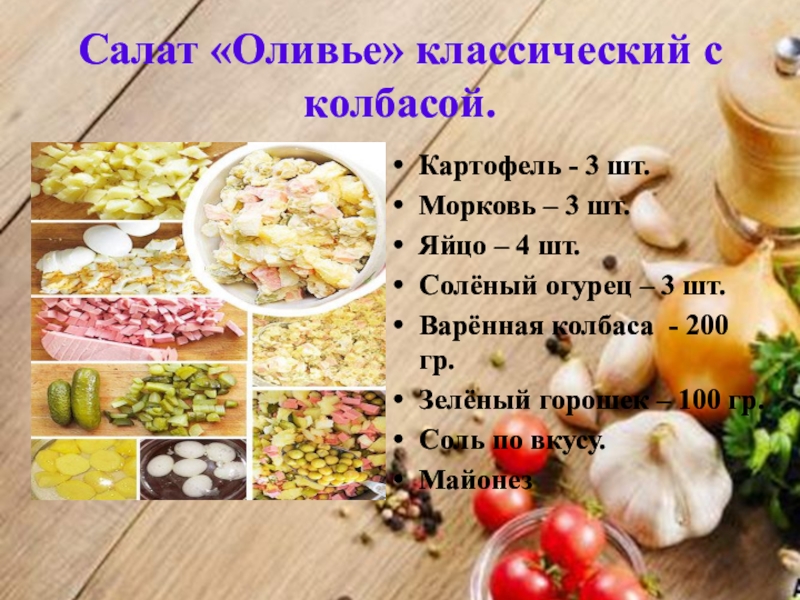 Презентация, доклад по СБО на тему Приготовление салата Оливье