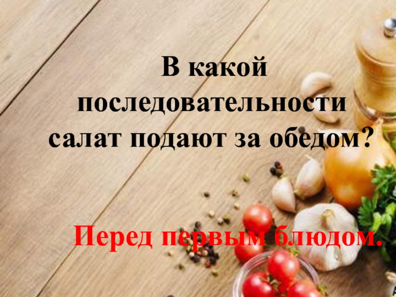 Перед первым блюдом.	В какой последовательности салат подают за обедом?