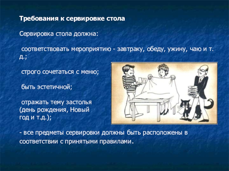 - все предметы сервировки должны быть расположены в соответствии с принятыми правилами.