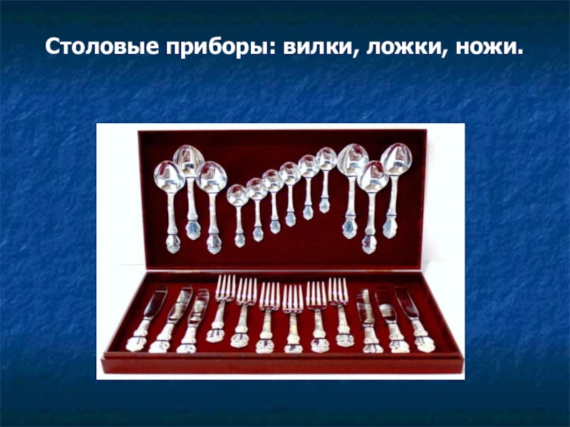Слайд 11Столовые приборы: вилки, ложки, ножи.