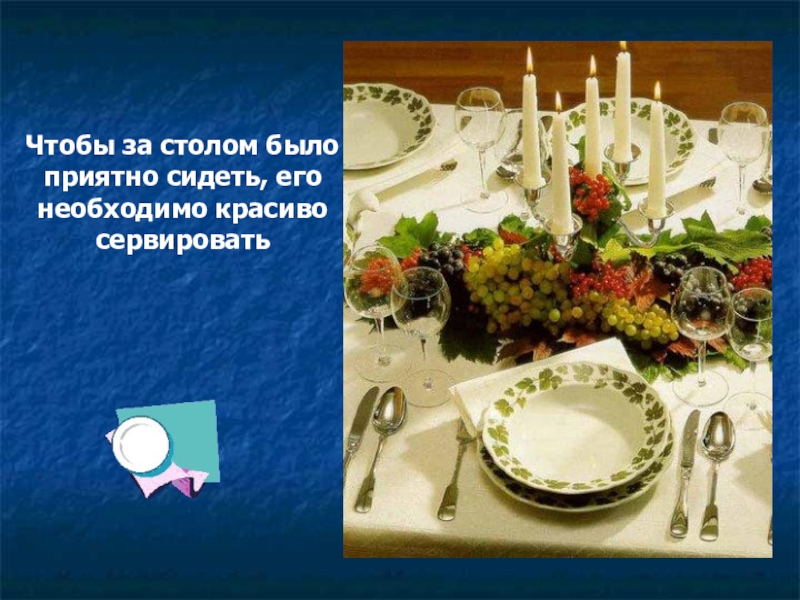 Слайд 12Чтобы за столом было приятно сидеть, его необходимо красиво сервировать