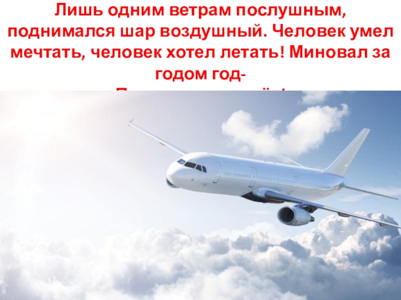 Слайд 12Лишь одним ветрам послушным, поднимался шар воздушный. Человек умел мечтать, человек хотел