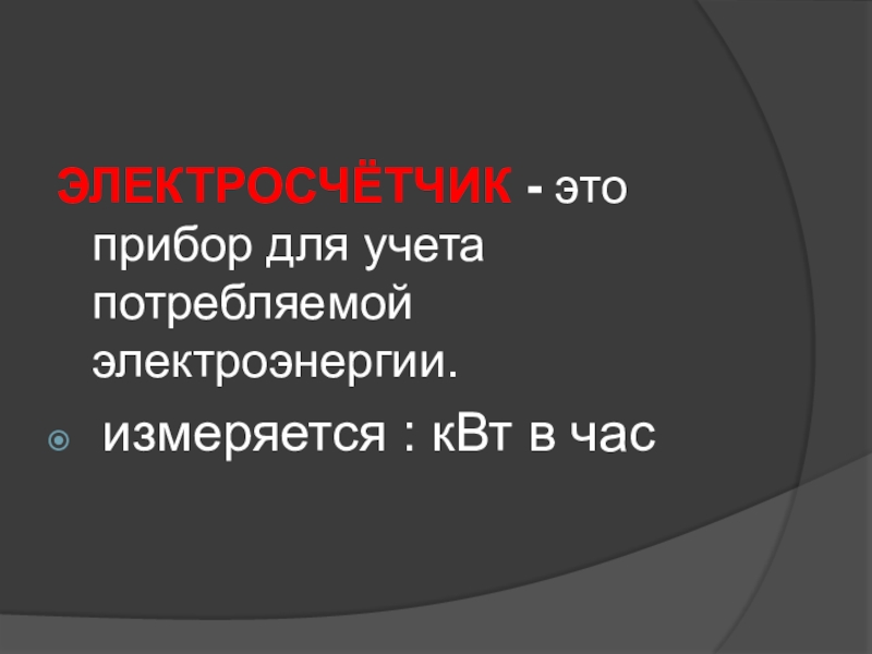 ЭЛЕКТРОСЧЁТЧИК - это прибор для учета потребляемой электроэнергии. измеряется : кВт в час