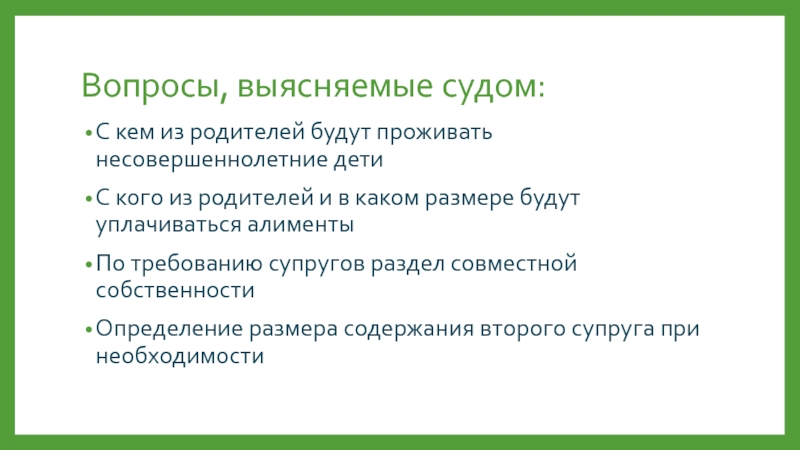 Слайд 21Вопросы, выясняемые судом: