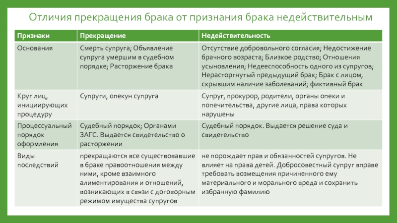 Слайд 15Отличия прекращения брака от признания брака недействительным