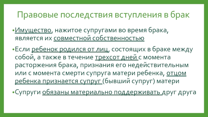 Слайд 8Правовые последствия вступления в брак