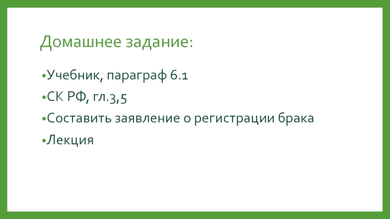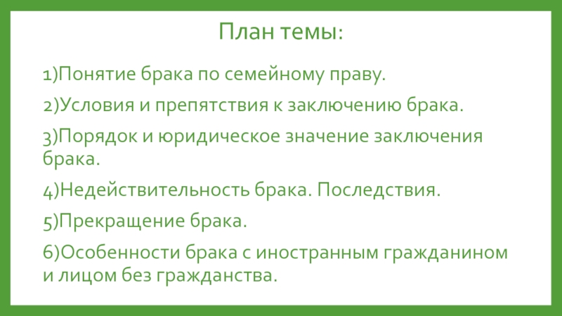 Слайд 73)Порядок и юридическое значение заключения брака.