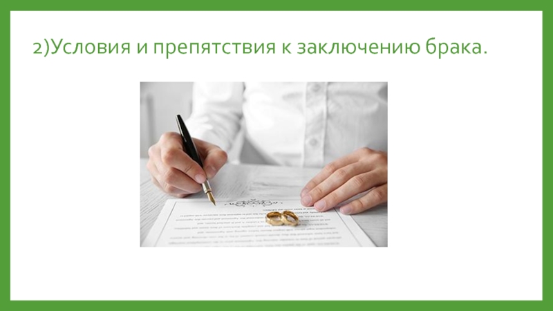 Слайд 52)Условия и препятствия к заключению брака.