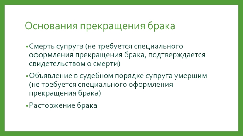 Слайд 16Основания прекращения брака