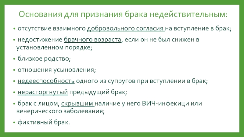 Слайд 10Основания для признания брака недействительным: