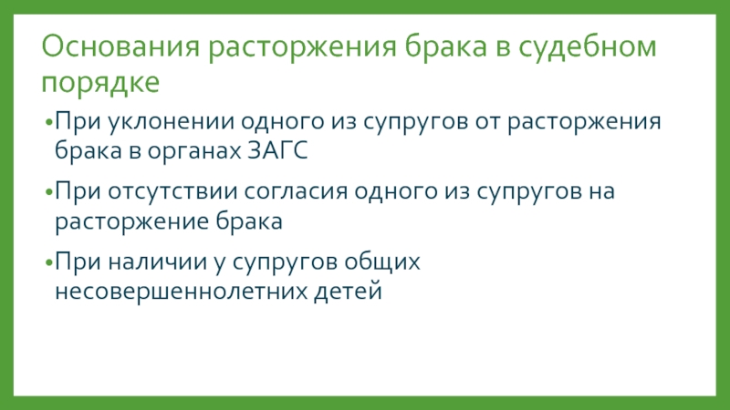 Слайд 19Основания расторжения брака в судебном порядке
