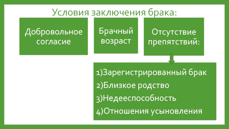 2)Условия и препятствия к заключению брака.