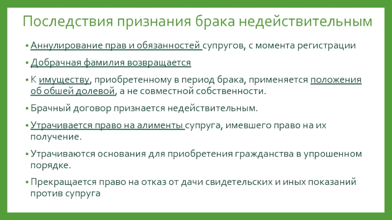 Слайд 12Последствия признания брака недействительным