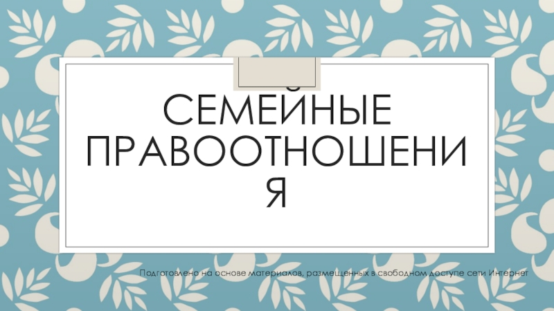 Семейные правоотношенияПодготовлено на основе материалов, размещенных в свободном доступе сети Интернет
