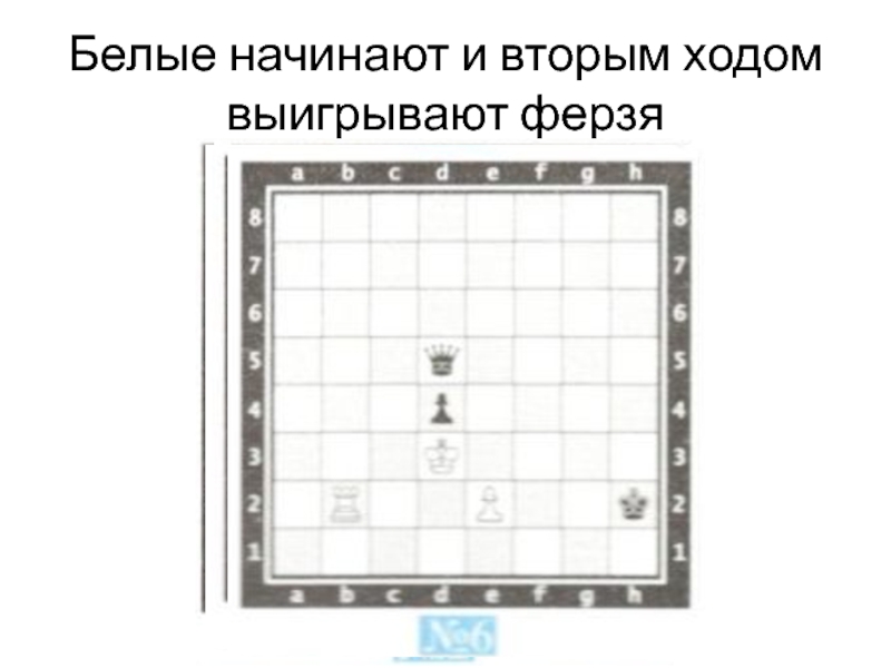 Слайд 3Белые начинают и вторым ходом выигрывают ферзя
