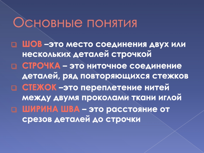 ШОВ –это место соединения двух или нескольких деталей строчкой