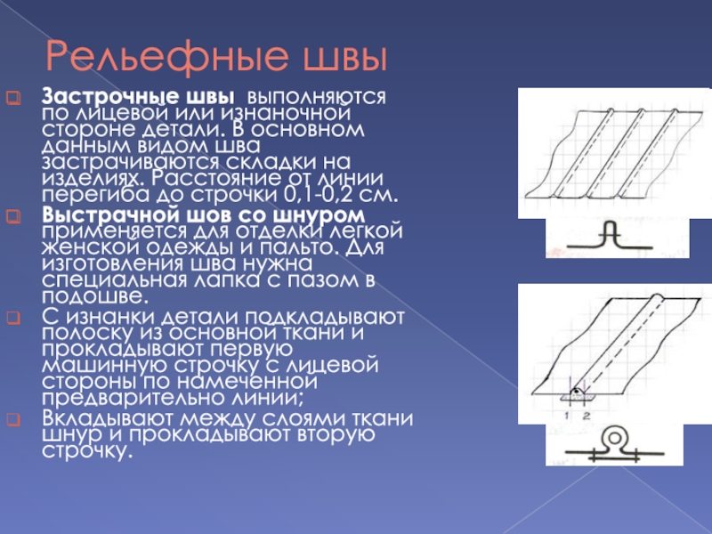 Слайд 19Рельефные швы