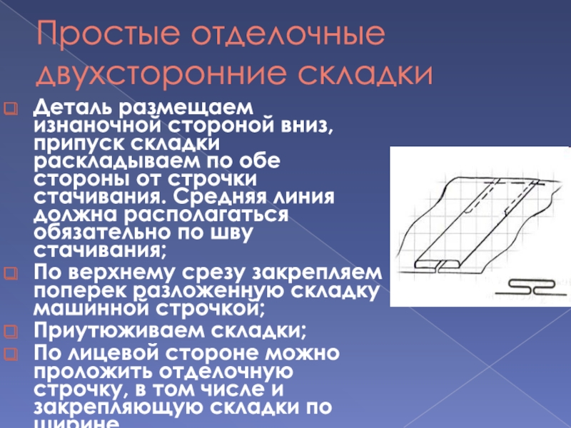 Слайд 22Простые отделочные двухсторонние складки