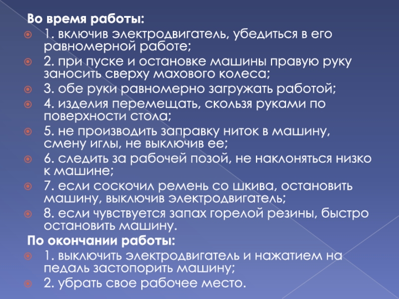 Слайд 7ПРАВИЛА РАБОТЫ НА ШВЕЙНОЙ МАШИНЕ