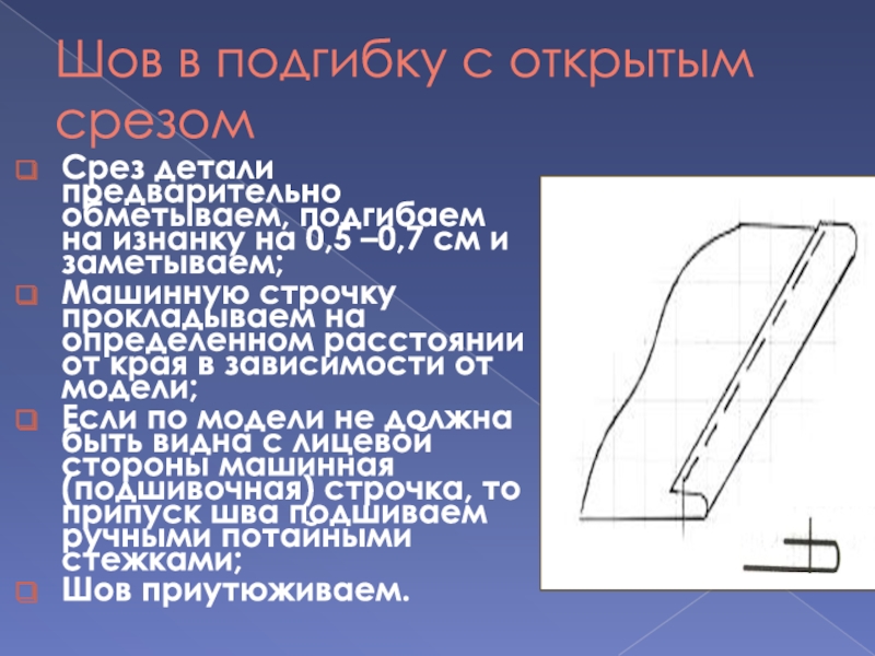 Слайд 16Шов в подгибку с открытым срезом