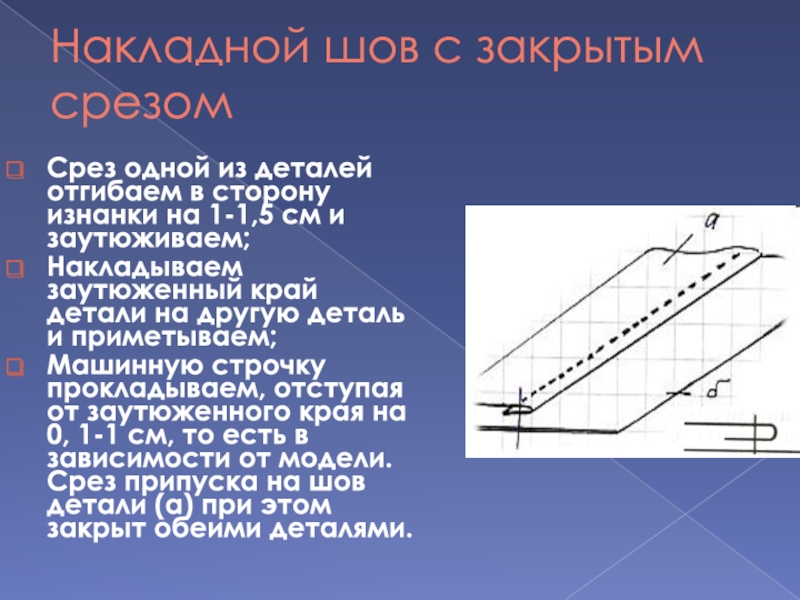 Слайд 21Накладной шов с закрытым срезом