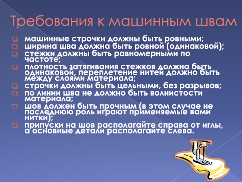 Слайд 13Требования к машинным швам