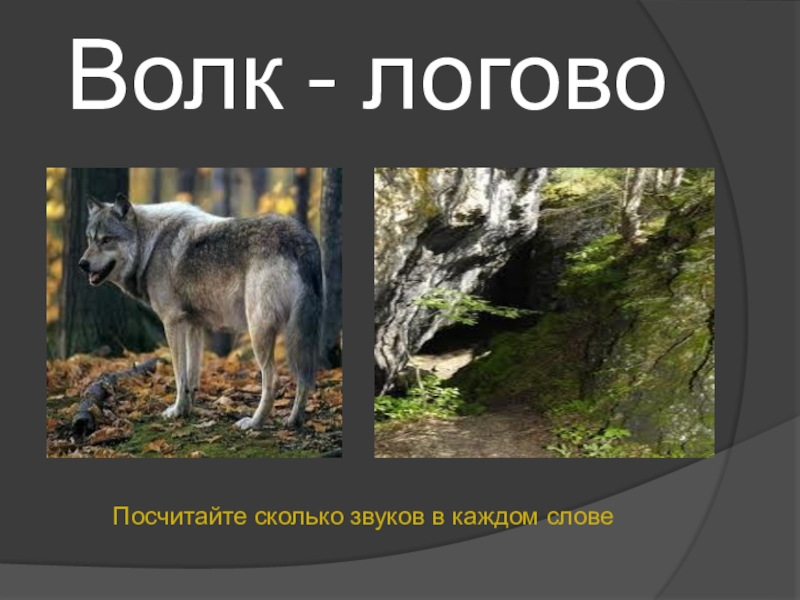 Волк - логово     Посчитайте сколько звуков в каждом слове