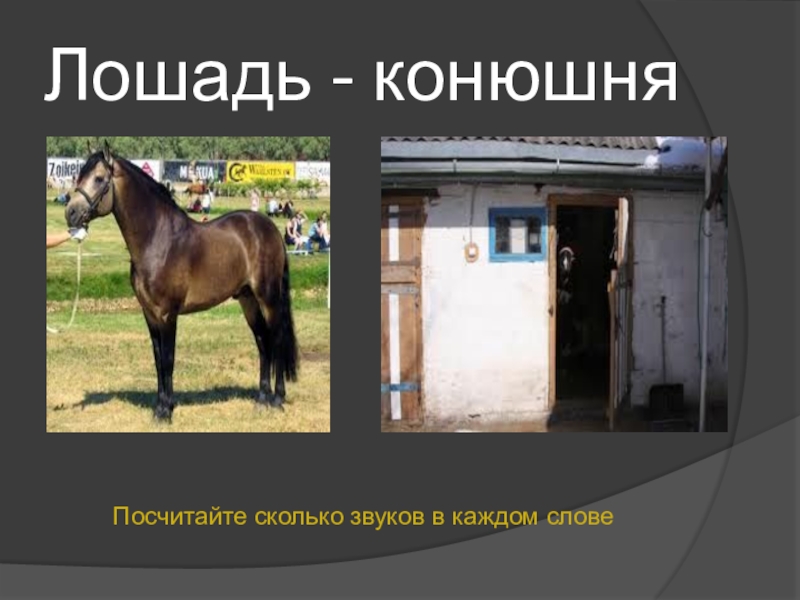 Лошадь - конюшня     Посчитайте сколько звуков в каждом слове