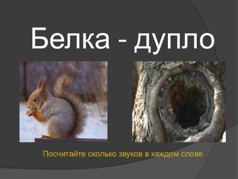 Белка - дуплоПосчитайте сколько звуков в каждом слове