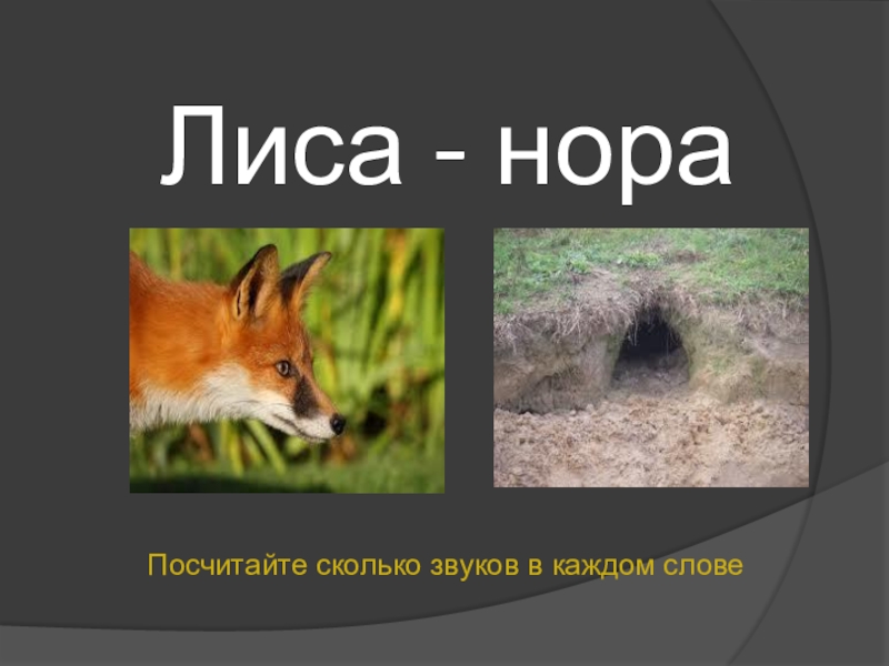 Лиса - нора     Посчитайте сколько звуков в каждом слове
