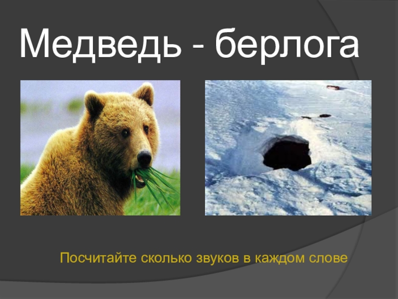 Медведь - берлога  Посчитайте сколько звуков в каждом слове
