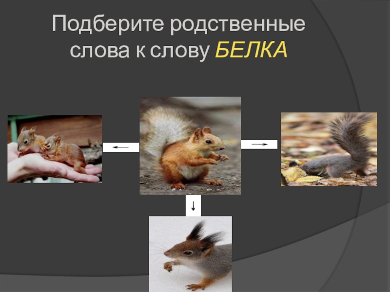 Слайд 16Подберите родственные слова к слову БЕЛКА