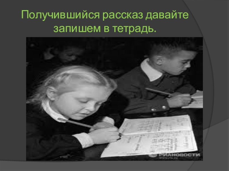 Слайд 21Получившийся рассказ давайте запишем в тетрадь.