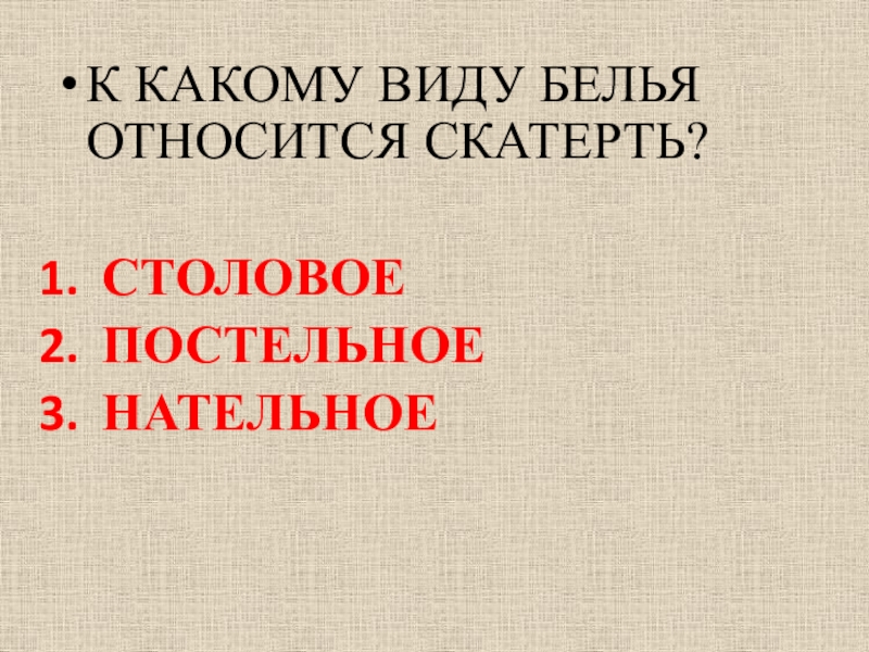 Слайд 8К КАКОМУ ВИДУ БЕЛЬЯ ОТНОСИТСЯ СКАТЕРТЬ?