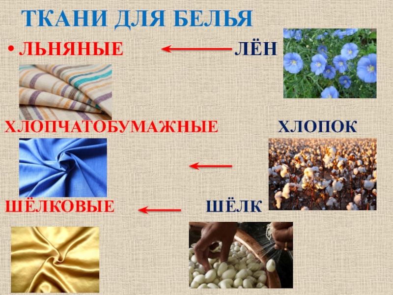 Слайд 4ТКАНИ ДЛЯ БЕЛЬЯ