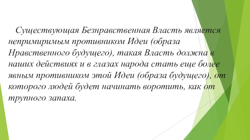 Слайд 52 Существующая Безнравственная Власть является непримиримым противником Идеи (образа Нравственного