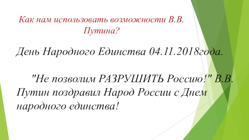 Слайд 54Как нам использовать возможности В.В.Путина?