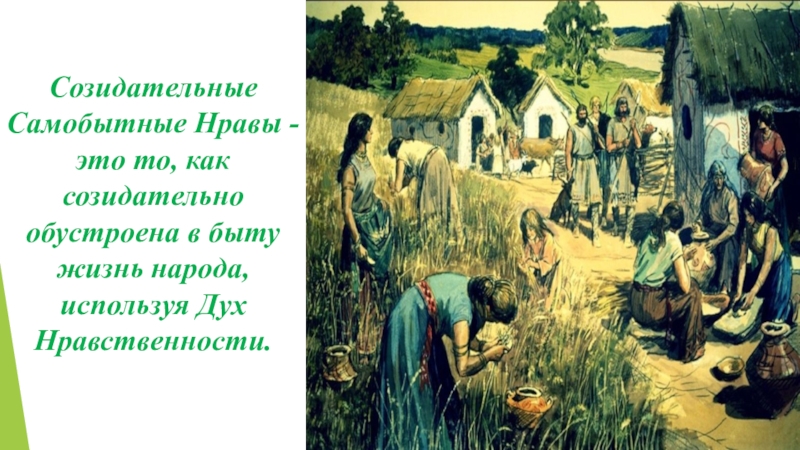 Слайд 20Созидательные Самобытные Нравы - это то, как созидательно обустроена в быту