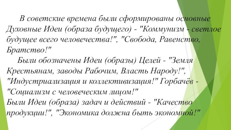 Слайд 53 В советские времена были сформированы основные Духовные Идеи